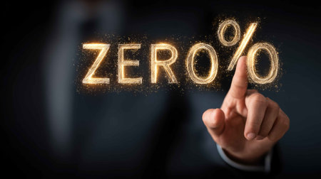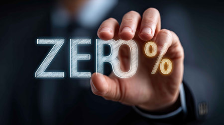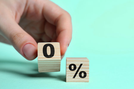 A close-up view of a hand holding the letters representing zero percent. This image symbolizes business concepts such as risk, profit, and economic performance with a professional touch.