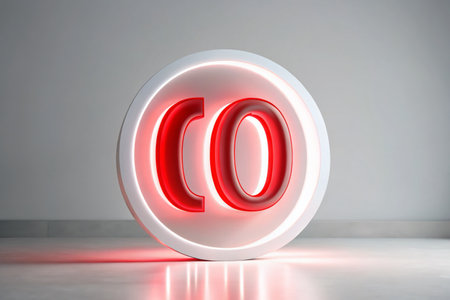 4K Red Glowing Zero in Circle: Minimalist White Background Stock Photo