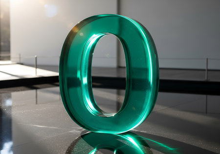 A sleek, transparent glass number zero stands elegantly against a soft gradient backdrop, radiating a modern and minimalist vibe. The interplay of light and reflections creates a captivating visual effect, making it perfect for themes of new beginnings and fresh starts.