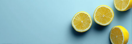 Bright lemon wedges are neatly positioned on a soft blue surface, offering a cheerful and refreshing touch perfect for enhancing culinary creativity