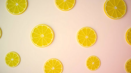Bright yellow lemon slices artfully arranged on a soft pastel gradient, offering a fresh, vibrant feel perfect for summer themes, recipes, or health content.