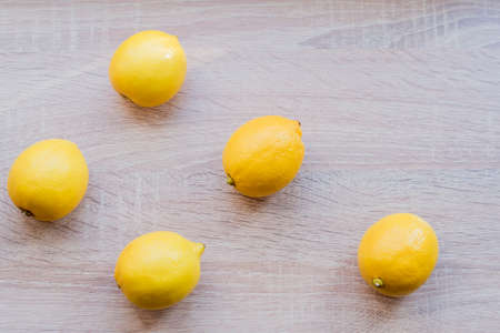 top view of fresh lemon fruits on wooden table