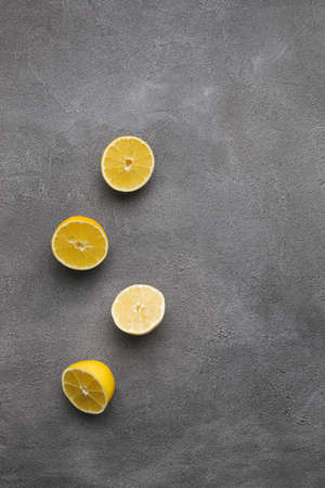 Slices of sour lemon on a gray background