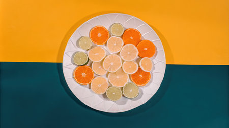Colorful Plate of Citrus Slices on a Bold Background