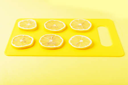 Lemon slices on a yellow Board close up