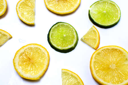 Lemon and lime slices on white background