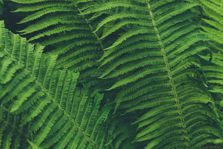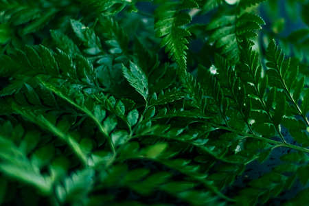 Abstract emerald background. Fern leaves close-up. Green fronds. Natural botanical wallpaper