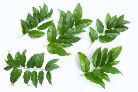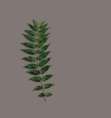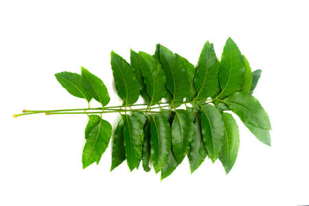 Medicinal neem leaf isolated on white background. Green leaf in South East Asia. Azadirachta indica var. siamensis valeton. Neem leaves are food and herbal medicine.