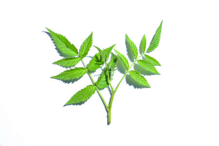 Fresh green raspberry leaf on white background. HD Image and Large Resolution. can be used as desktop wallpaper
