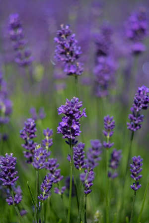 Lavender flowers in the field. Selective focus. Shallow depth of field.