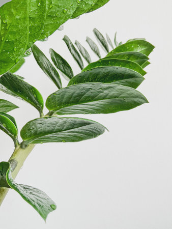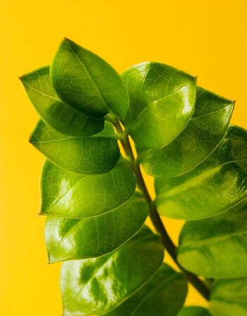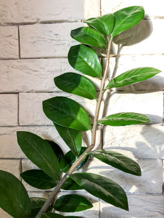 houseplant - Zamioculcas. green branches of Zamioculcus closeup. copy space