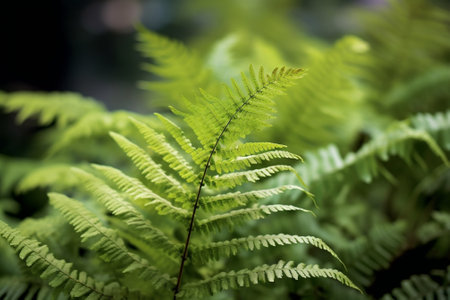 fern leaf is green with shallow depth of field. shallow depth of field on fern branches