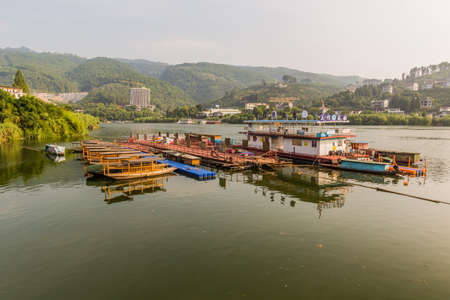 FURONG ZHEN, CHINA - AUGUST 11, 2018: River pontoon in Furong Zhen town, Hunan province, China