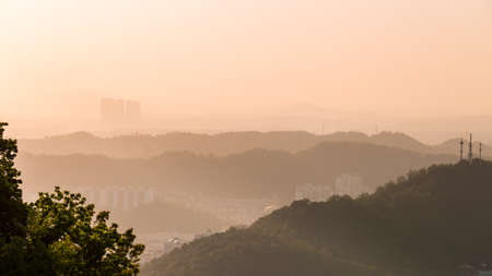Cityscape of Hangzhou at sunset, China. Hangzhou is the capital of China.