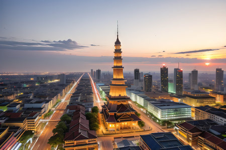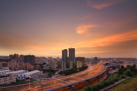 Sunset landscape of southern new town in Changchun, China