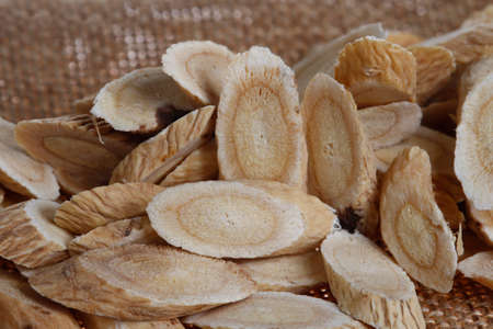 Chinese herbal medicine astragalus membranaceus on a white background, close-up pictures