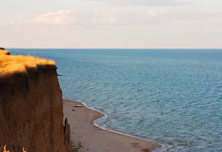 Sandy beach hills Black Sea seascape close to Odessa, Ukraine