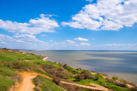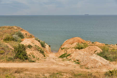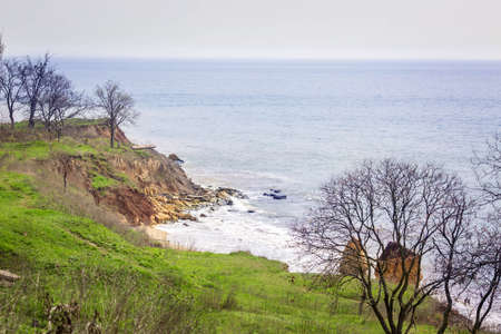 Beautiful landscape, sandy cliff over the sea. Spring. Travel concept. Beautiful nature. Ukraine.