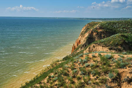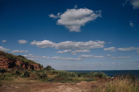 Picturesque slope of the sea coast on a warm summer day. Beautiful landscape