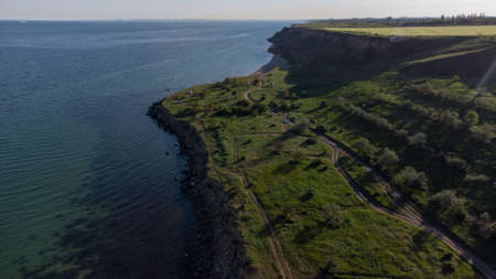 Seashore in the spring at dawn. Aerial view. Grigorievka. Odessa. Ukraine