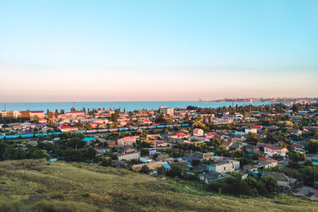 Ataman, Russia - September 26, 2015: The landscape at the Cossack village - a museum Ataman. the village and the sea view from the heights of the hill.
