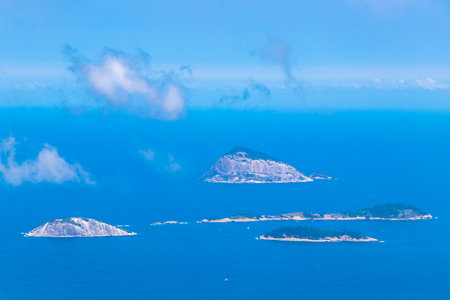 Tropical Paradise with Blue Turquoise Water Waves Rocks Hills and Islands in Rio de Janeiro State of Rio de Janeiro Brazil.