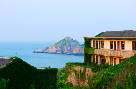 The decline of fisheries resources, China Zhejiang Shengsi Shengshan Island fishermen have relocated, becoming no village, abandoned houses covered with green plants