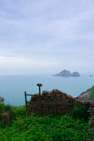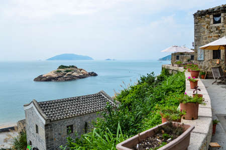 Turtle island seen from an elevated viewpoint in the preserved stone village of Qinbi, the top tourist destination for the Matsu islands in Taiwan
