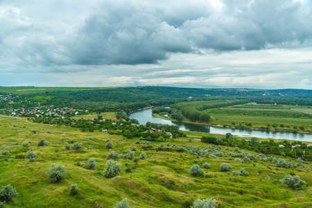 Beautiful view over the river on a sunrise. Outdoor recreation. Dniester panorama.