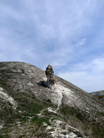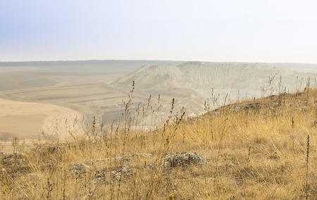 Chalky mountain near Kamyshinskiy, Ilovlinskiy district, in Volgograd region, Russia. Formed by white chalk deposits of limestones from millions yeas ago. It used to be the bottom of the sea.