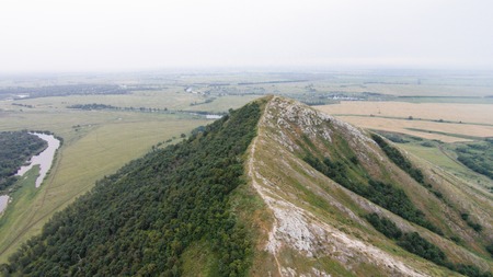 Flying over Shikhan mountain Yuraktau Russia, Bashkortostan, South Ural.