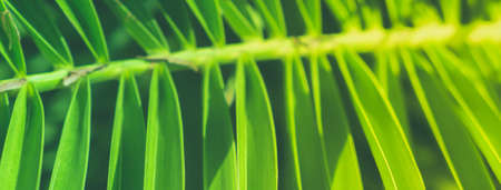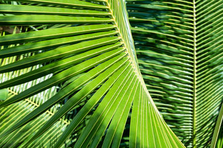 Close up of bright green palm leaves as a natural tropical background