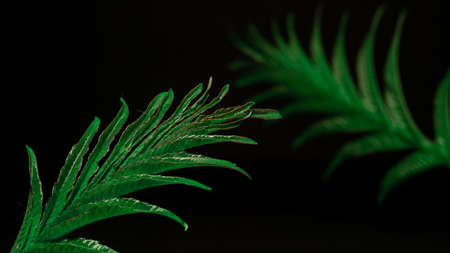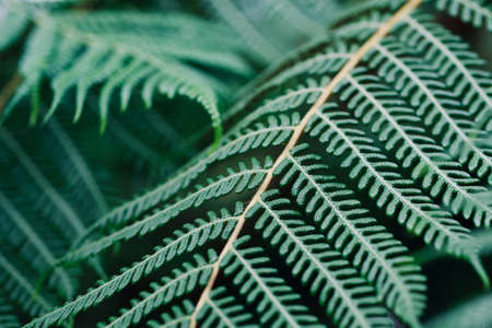 Macro shot of a green fern leaves with very details texture and narrow depth-of-field