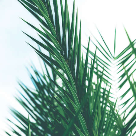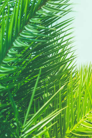 Close up view of beautiful tropical palm leaves