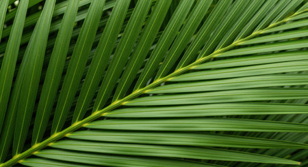 Tropical green palm leaf pattern with parallel fronds and natural texture creating abstract botanical background in vibrant summer light.