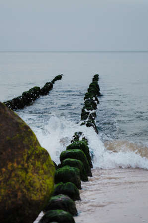 Wooden breakwater in the Baltic sea, Poland