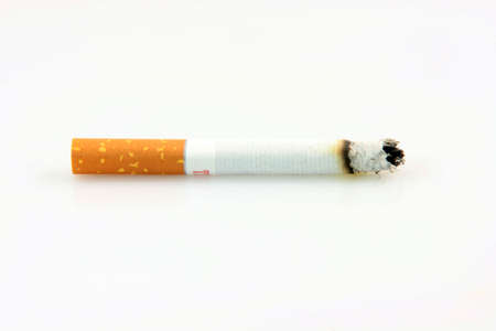 last cigarette on a white background during combustion