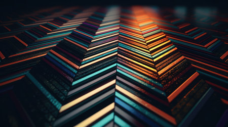 Abstract chevron pattern with bold color palette ai generated background image. Sharp angles flat colorful illustration backdrop horizontal. Movement aesthetics boho authentic wallpaper art concept