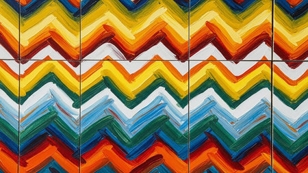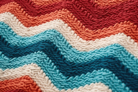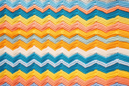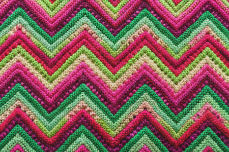 brightly coloured, woven textile with zigzag pattern, created with generative ai
