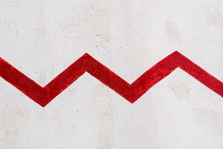 Textured abstract background of a red chevron zig zag pattern painted on a white concrete background