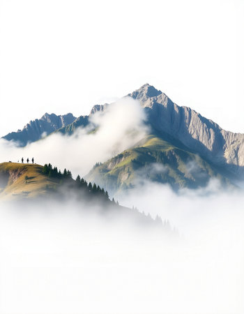 Experience the breathtaking beauty of a misty mountain landscape, where fog gently rolls over hills and trees, creating a serene and tranquil natural scene.