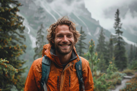 Hiker - man hiking in forest. Caucasian male model outdoors in nature.