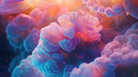 Swirling patterns in shades of pink, blue, and purple create an abstract representation that resembles soft clouds. This colorful display evokes a dreamy and ethereal atmosphere