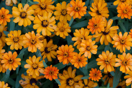 Bright zinnia flowers close up as a beautiful autumn background. Fall theme concept backdrop. selective focus