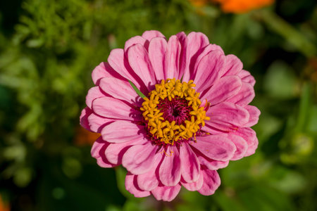 Pink Zinnia in its flowering period close-up. Natural light