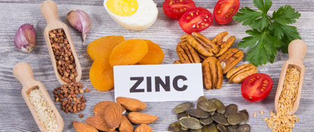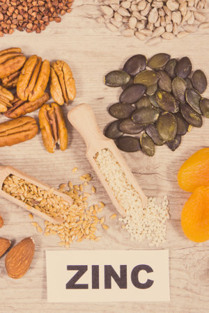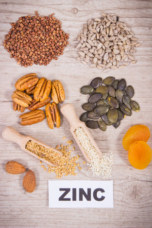 Healthy nutritious food and various ingredients containing natural zinc and other vitamins and minerals