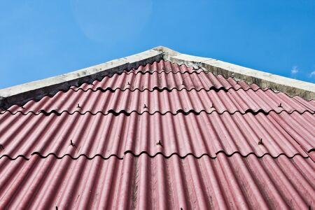 Red roof with clear blue sky