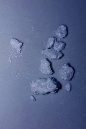 Close-up pile of copper sulfate. Blue chemical sulfate.Dark navy blue colored blank empty blotched marbled effect splattered textured smudged