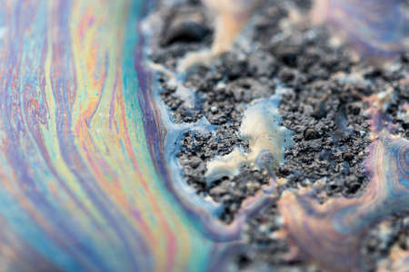 Gasoline Spill on Asphalt close up macro image