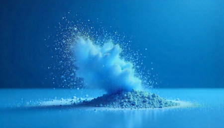 Dynamic blue powder explosion with diffused light effect.